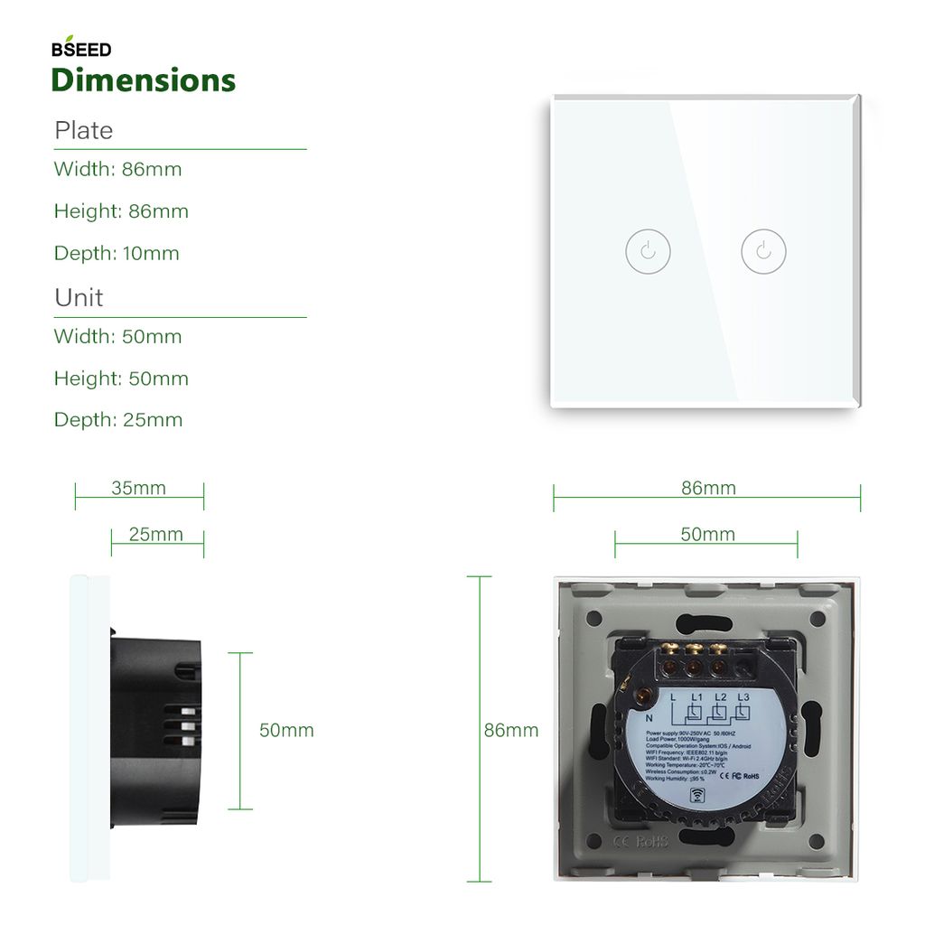 سويتش إضاءة ذكي (ثنائي) يعمل باللمس للتحكم في تشغيل الكهرباء عن بعد من الموبايل او التابلت . (متوافق مع جوجل اليكسا وجوجل هوم)
